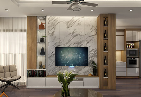 *Hạng mục thiết kế thi công: 1 phòng khách, 1 bếp, 2 phòng ngủ, 1 phòng làm việc